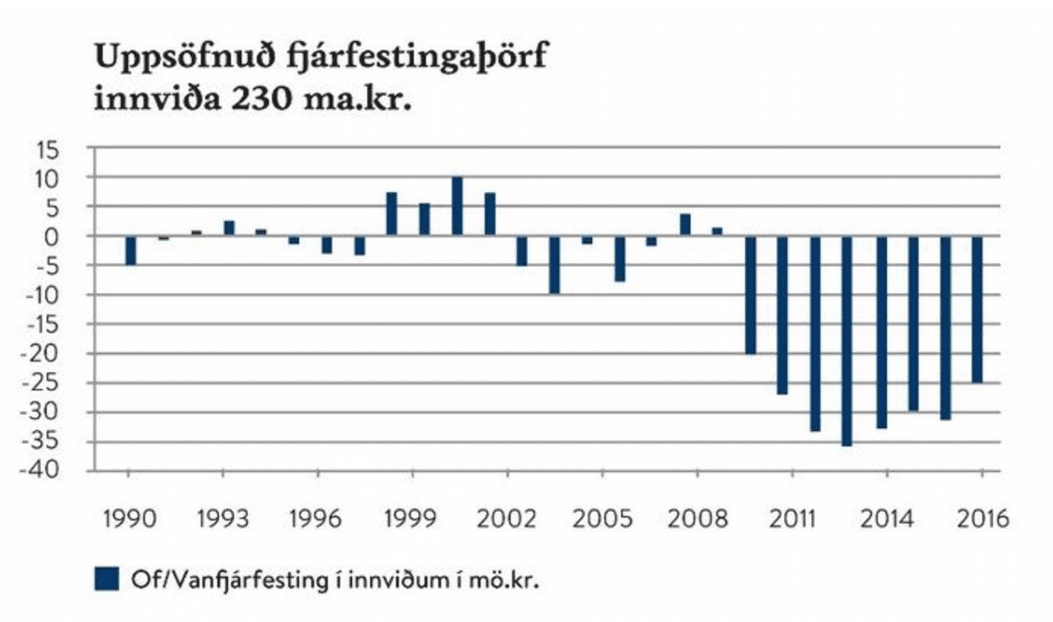 Ígreiní Fréttablaðinu í dag heldur Sölvi Blöndal, hugmyndafræðingur Gamma, því fram að hrörnun innviða á Íslandi megi rekja til Hrunsins, að skuldir hins opinbera hafi þá hækkað svo mjög að það hafði ekki bolmagn til nýfjárfestinga, ekki einu sinni til að viðhalda innviðastofninum. Þetta er rangt hjá Sölva, eins og allir vita.